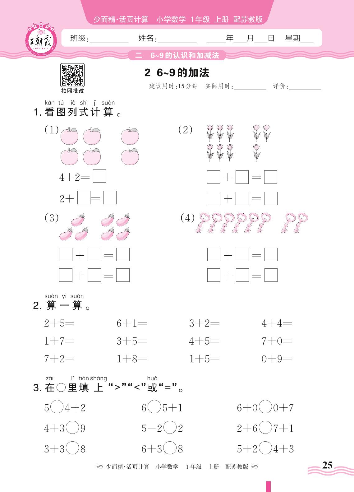 2024秋上册一年级数学苏教版 第二单元 6~9的认识和加减法——2. 6~9的加法