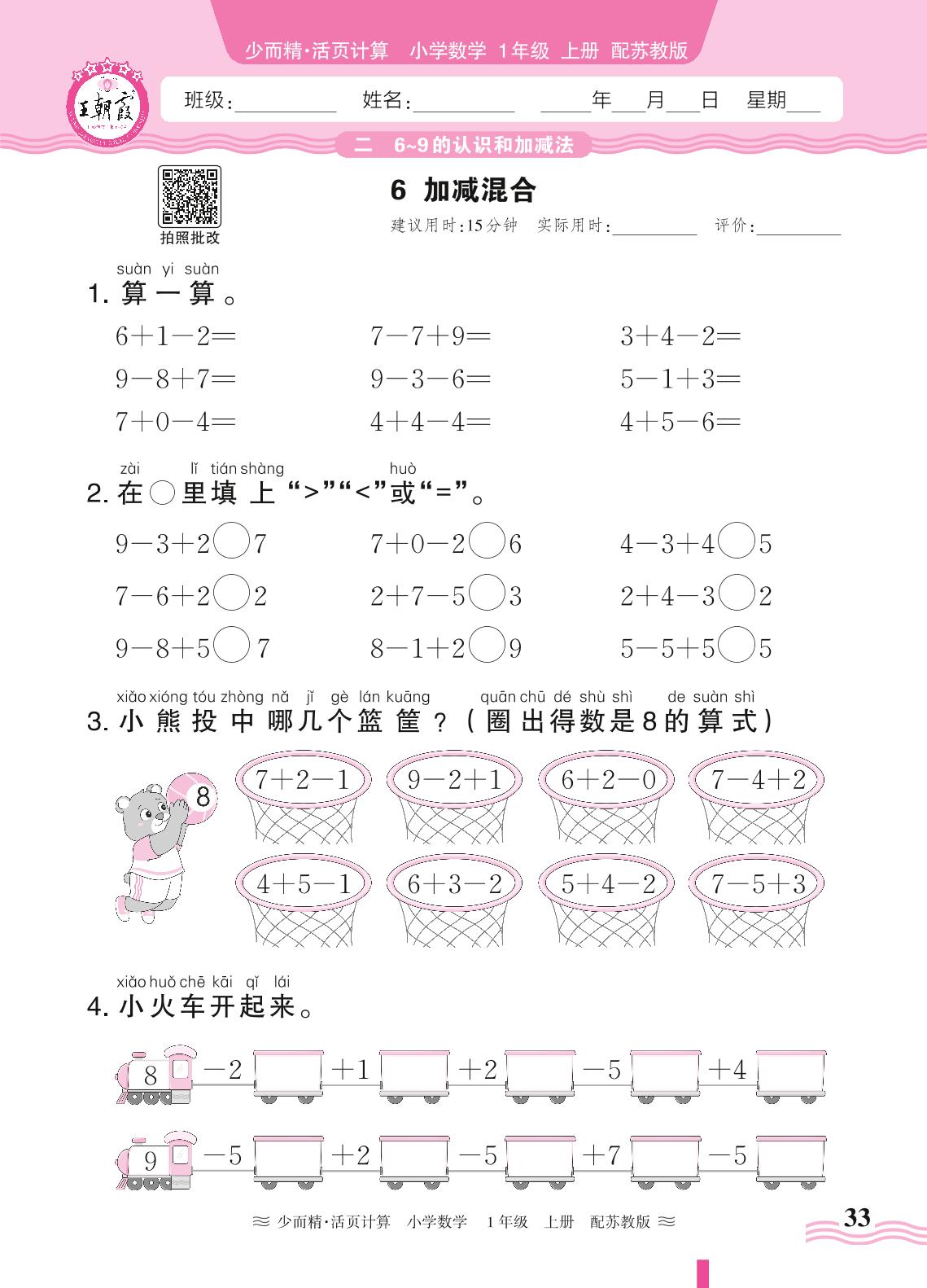2024秋上册一年级数学苏教版 第二单元 6~9的认识和加减法——6. 加减混合_R240819181322274