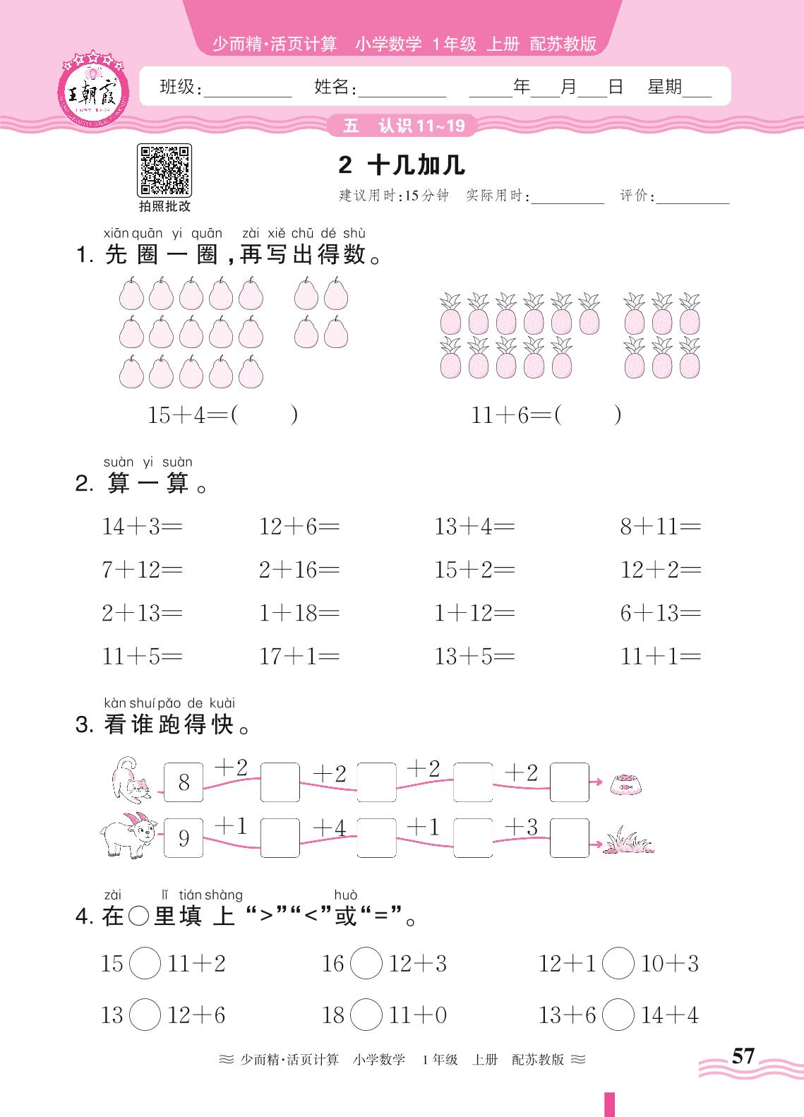2024秋上册一年级数学苏教版 第五单元 认识11~19——2. 十几加几
