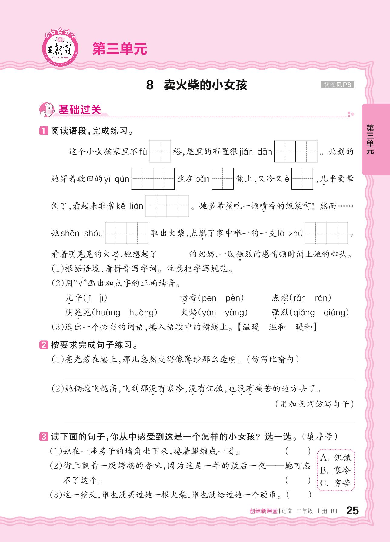 2024秋上册三年级语文人教版 第三单元 童话世界——8. 卖火柴的小女孩