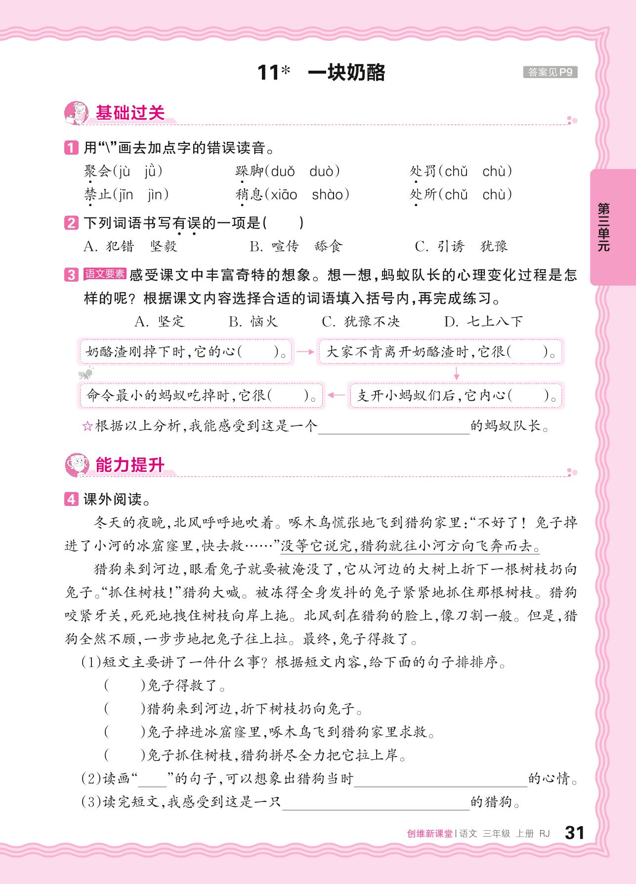 2024秋上册三年级语文人教版 第三单元 童话世界——11. 一块奶酪