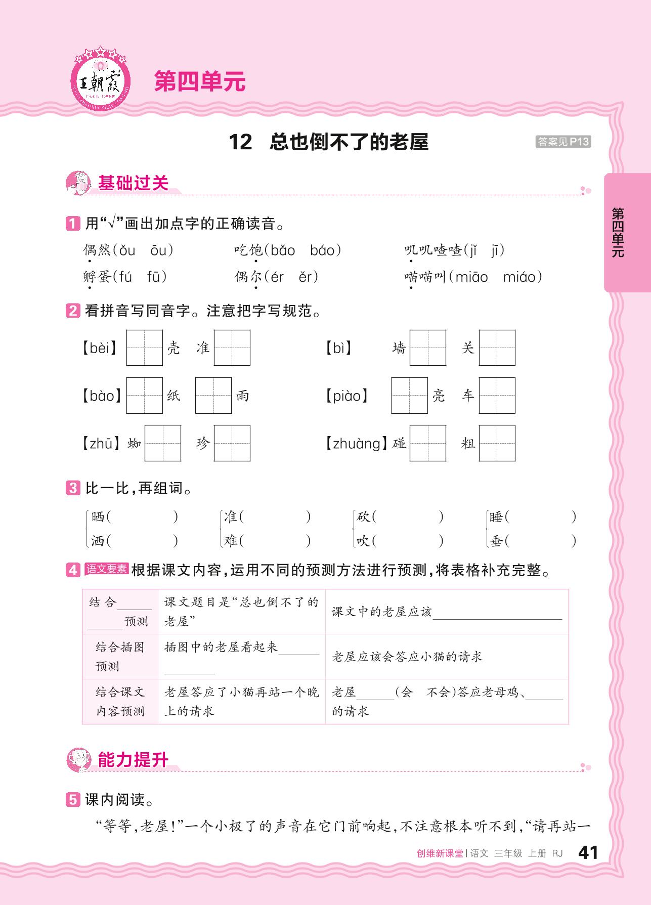 2024秋上册三年级语文人教版 第四单元 预测——12. 总也倒不了的老屋_R240819184208380