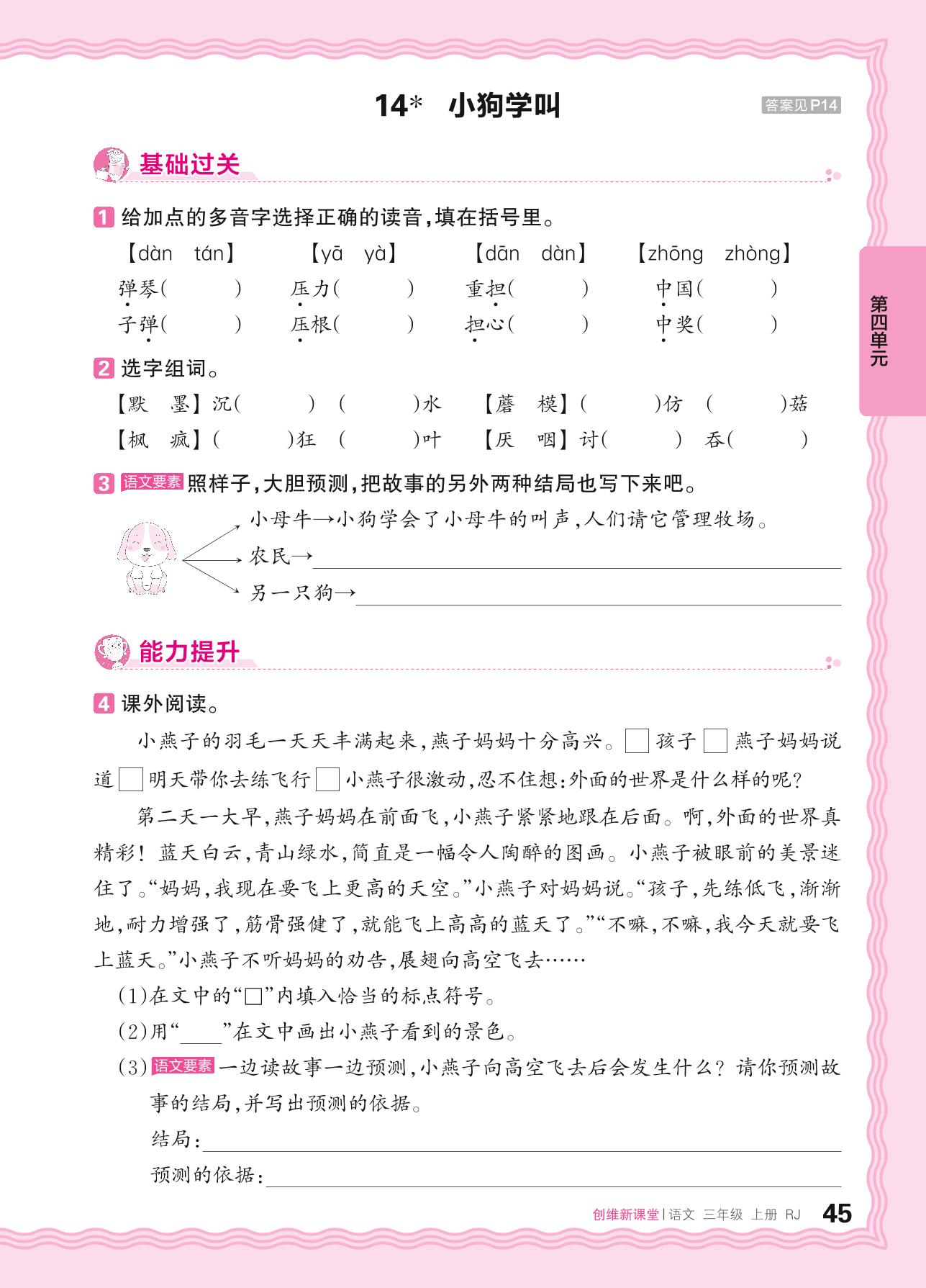 2024秋上册三年级语文人教版 第四单元 预测——14. 小狗学叫_R240819184209047