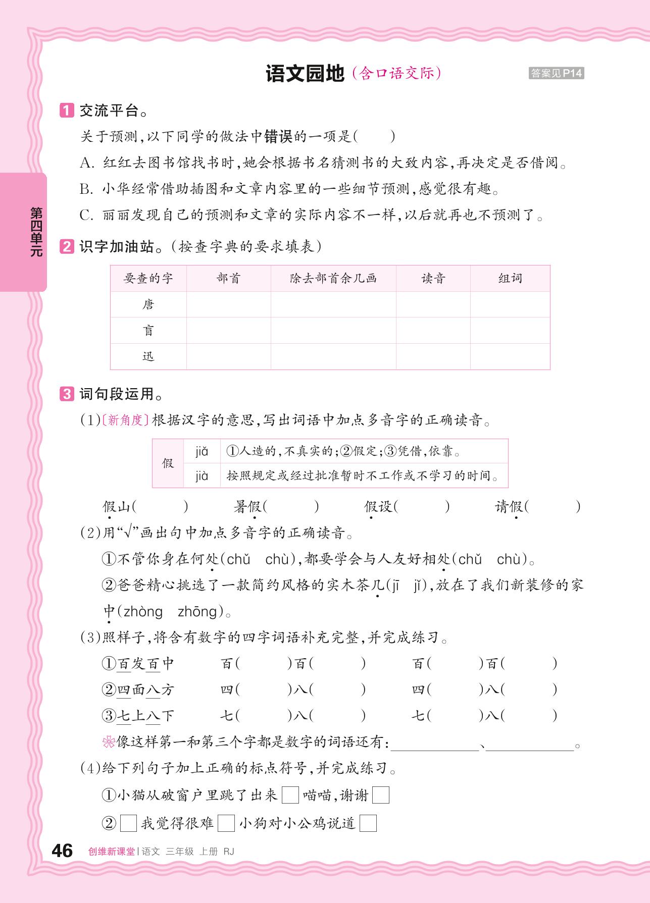 2024秋上册三年级语文人教版 第四单元 预测——语文园地(含口语交际)_R240819184210875