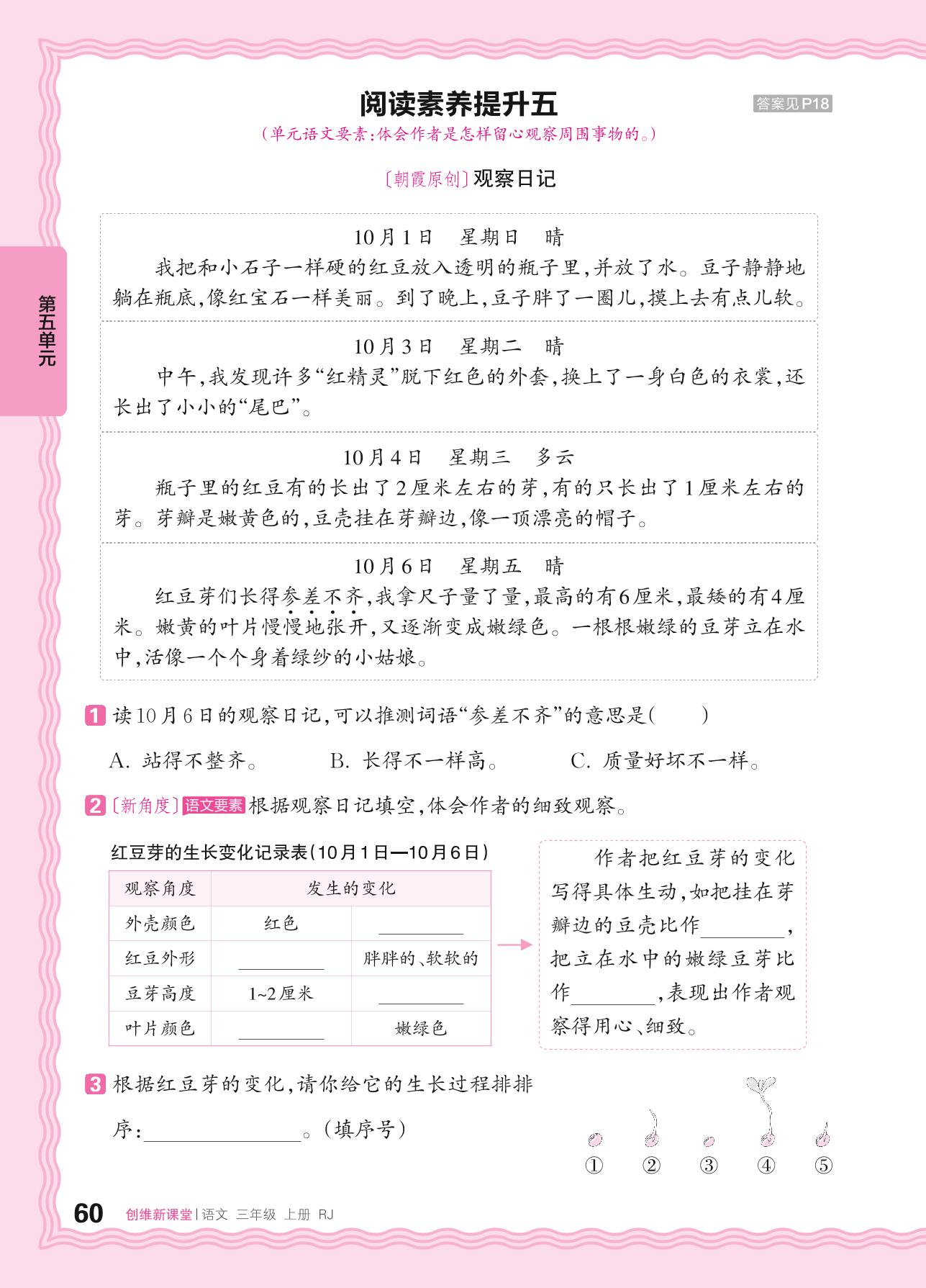 2024秋上册三年级语文人教版 第五单元 留心观察——阅读素养提升五