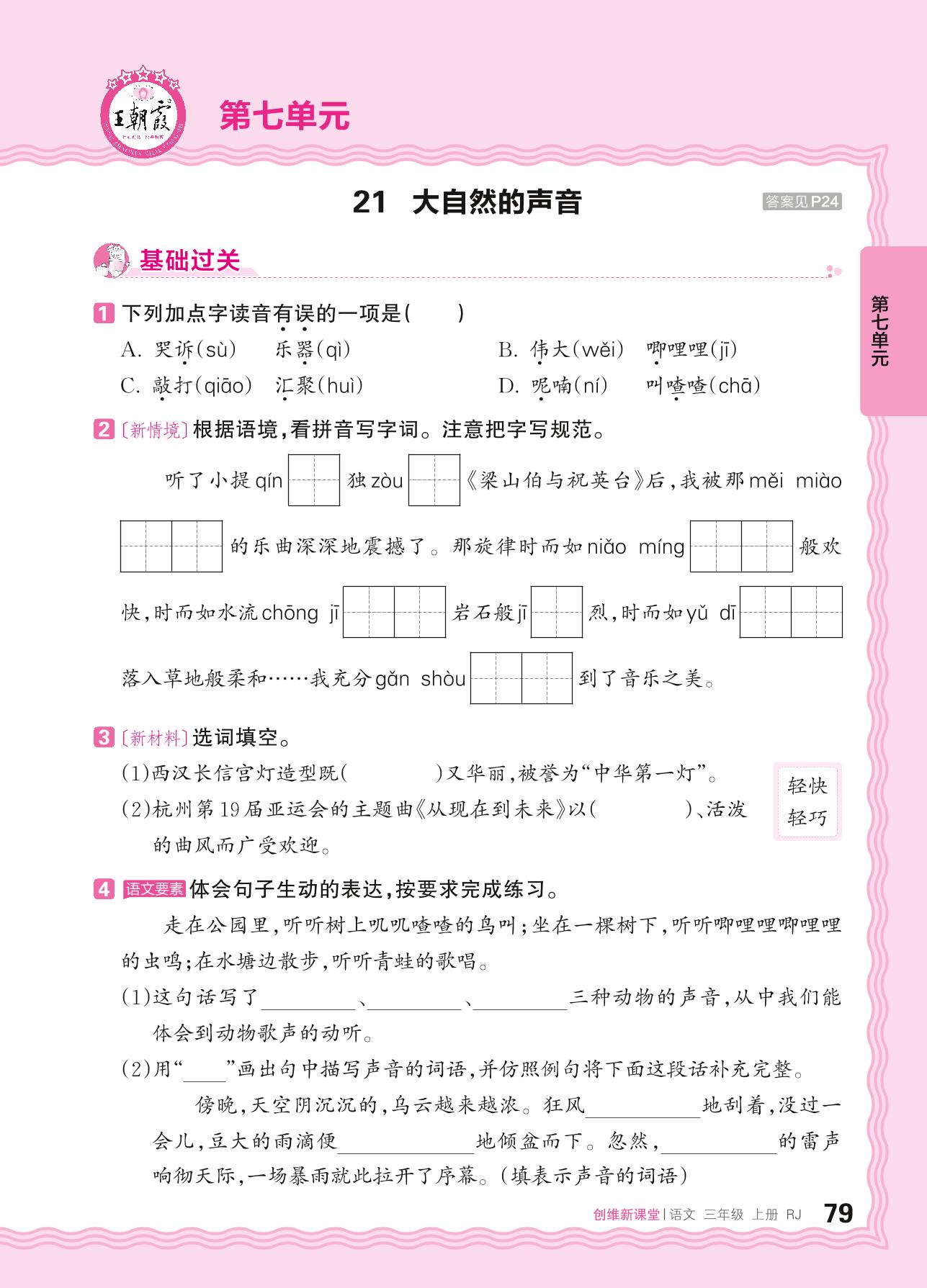 2024秋上册三年级语文人教版 第七单元 我与自然——21. 大自然的声音