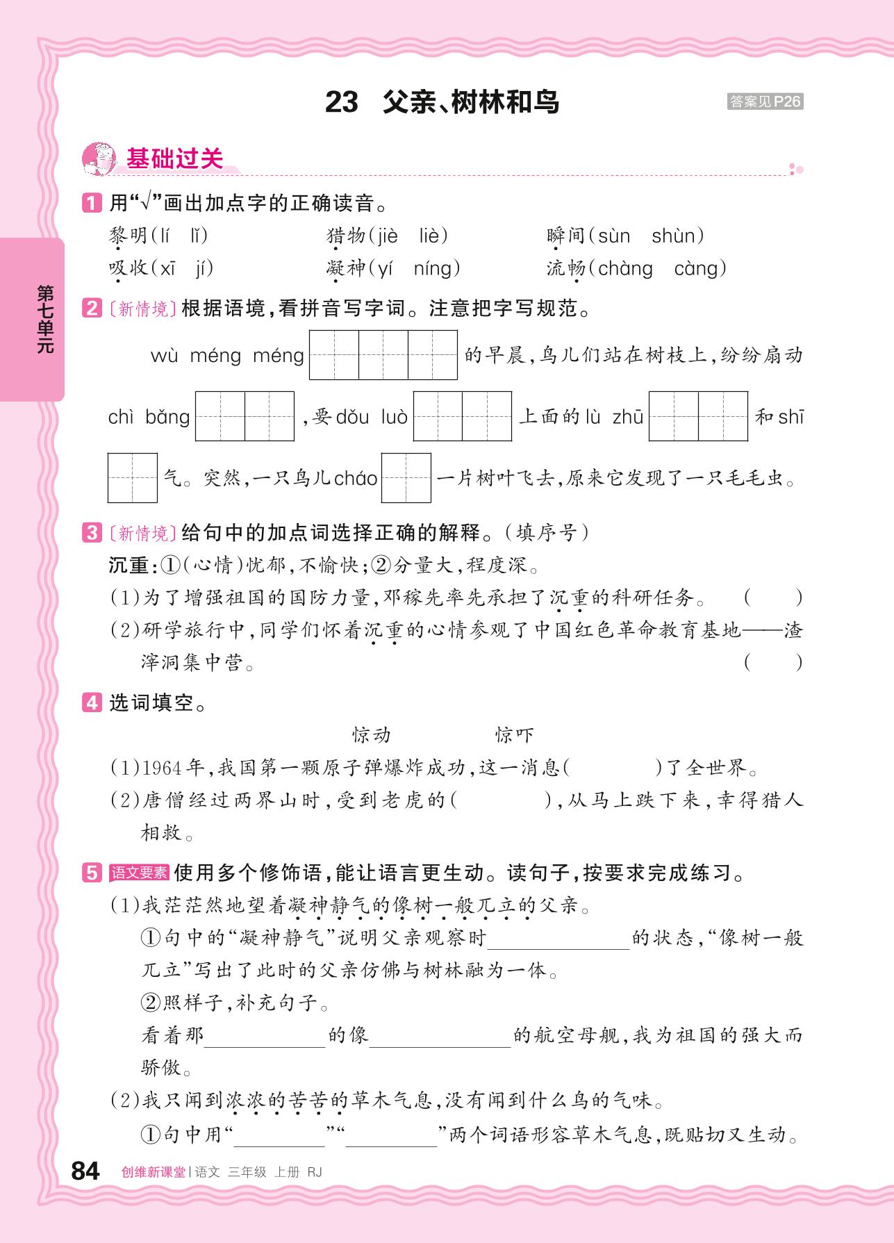 2024秋上册三年级语文人教版 第七单元 我与自然——23. 父亲、树林和鸟