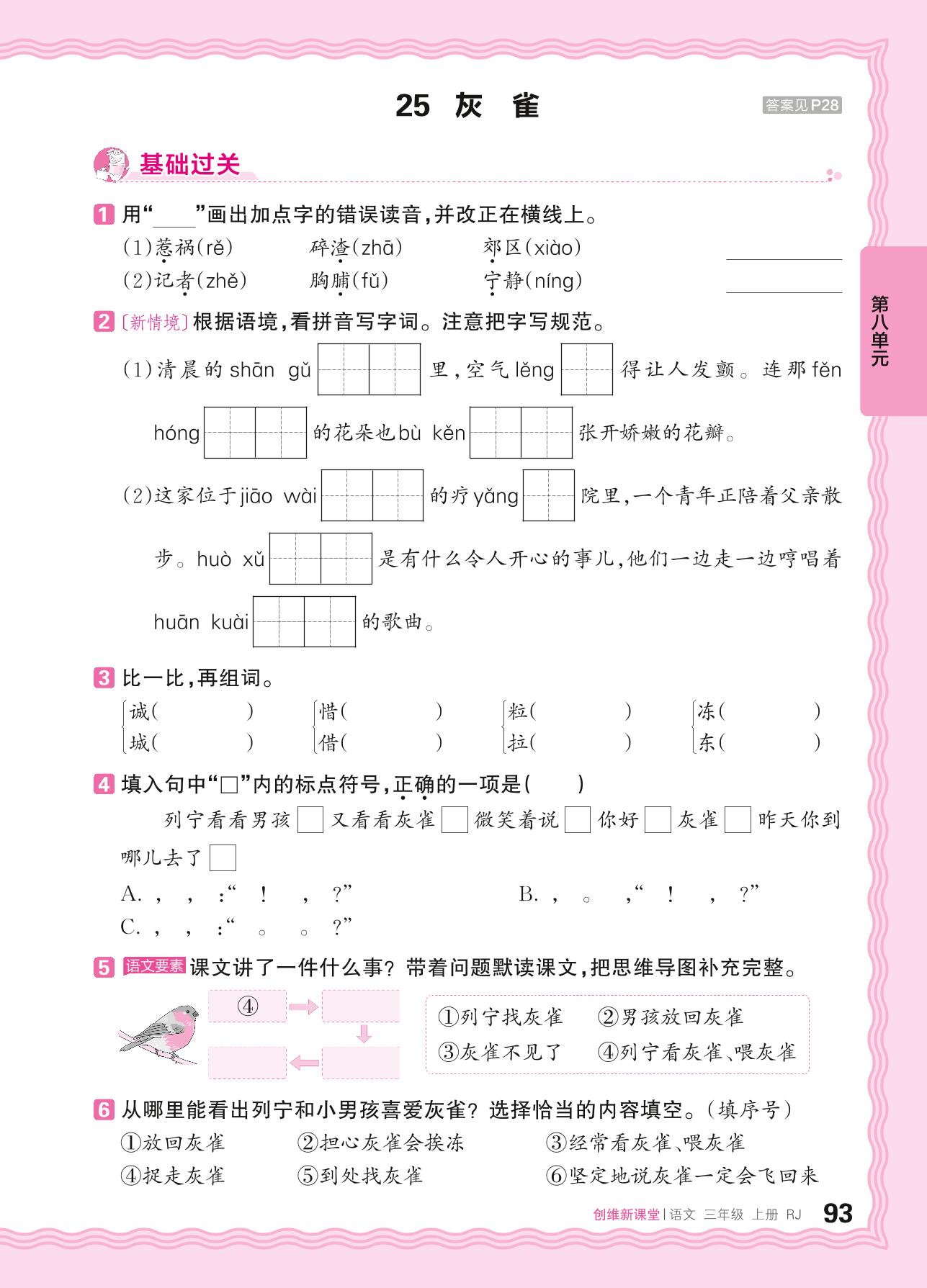 2024秋上册三年级语文人教版 第八单元 美好品质——25. 灰雀