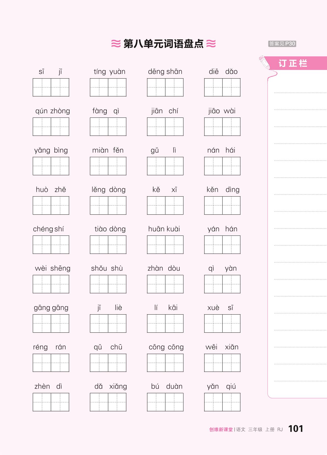 2024秋上册三年级语文人教版 第八单元词语盘点
