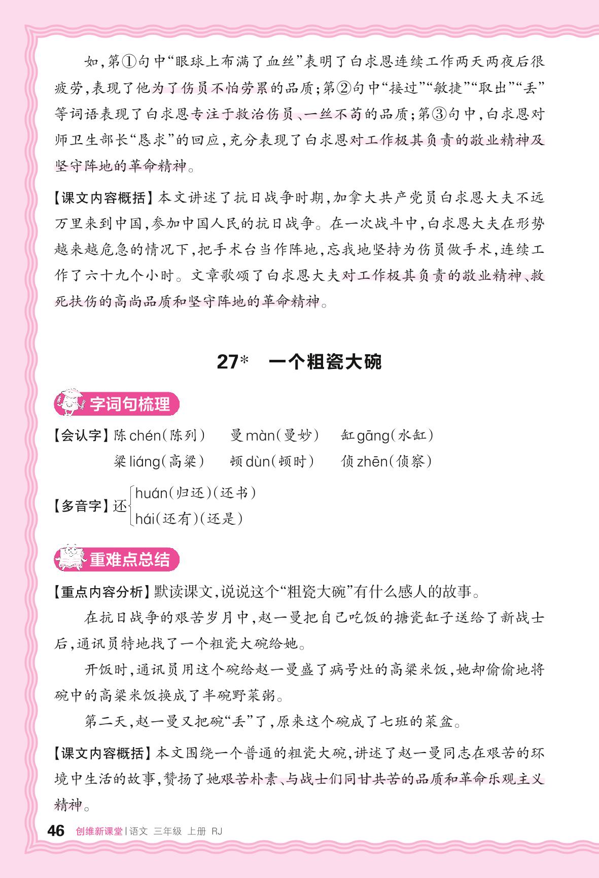 2024秋上册三年级语文人教版 助学手册 第八单元——27. 一个粗瓷大碗