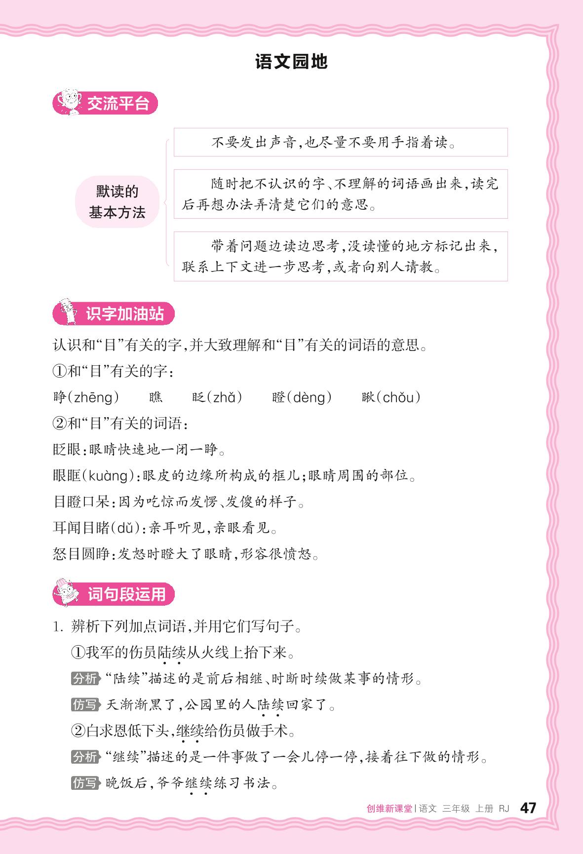 2024秋上册三年级语文人教版 助学手册 第八单元——语文园地