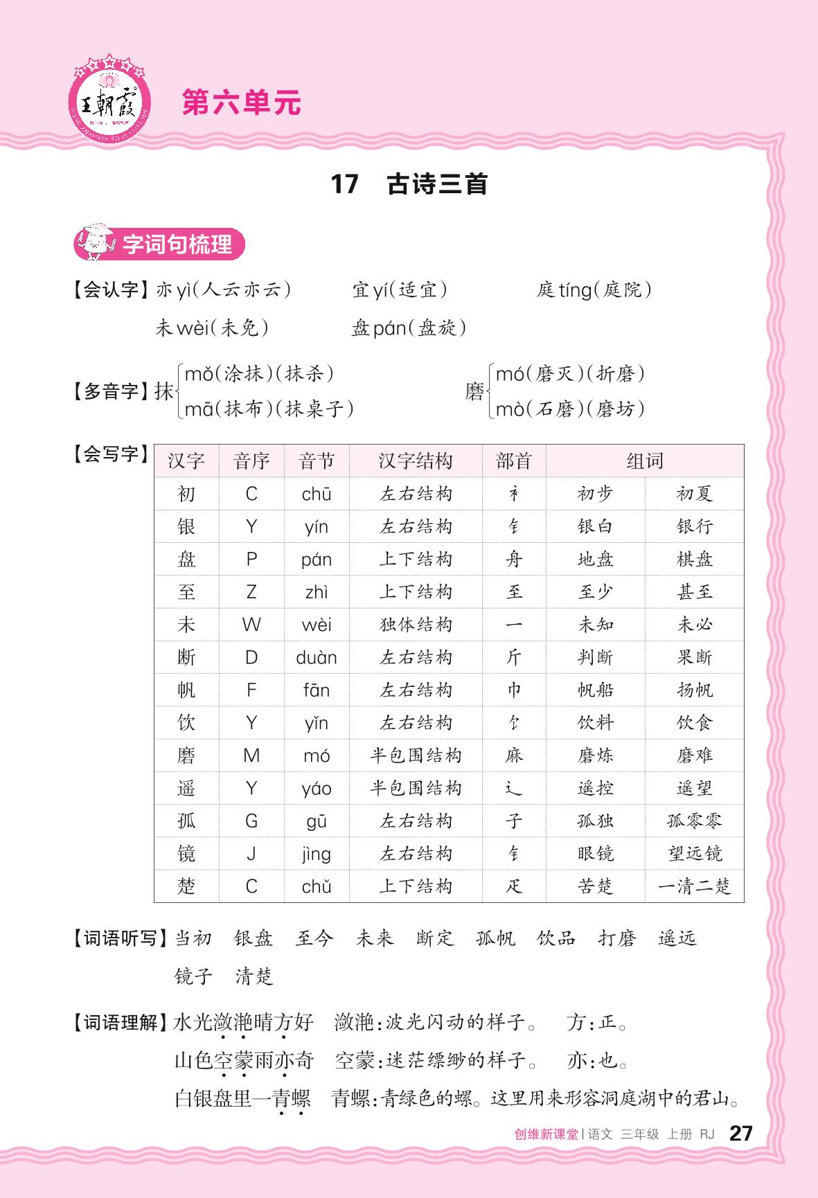 2024秋上册三年级语文人教版 助学手册 第六单元——17. 古诗三首