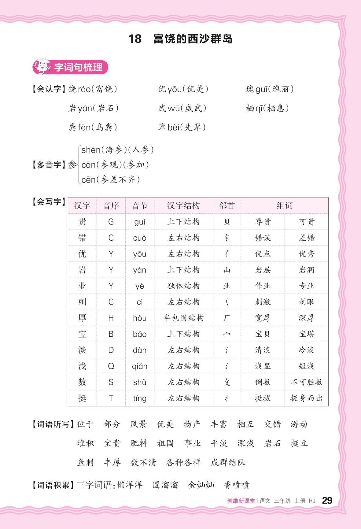 2024秋上册三年级语文人教版 助学手册 第六单元——18. 富饶的西沙群岛