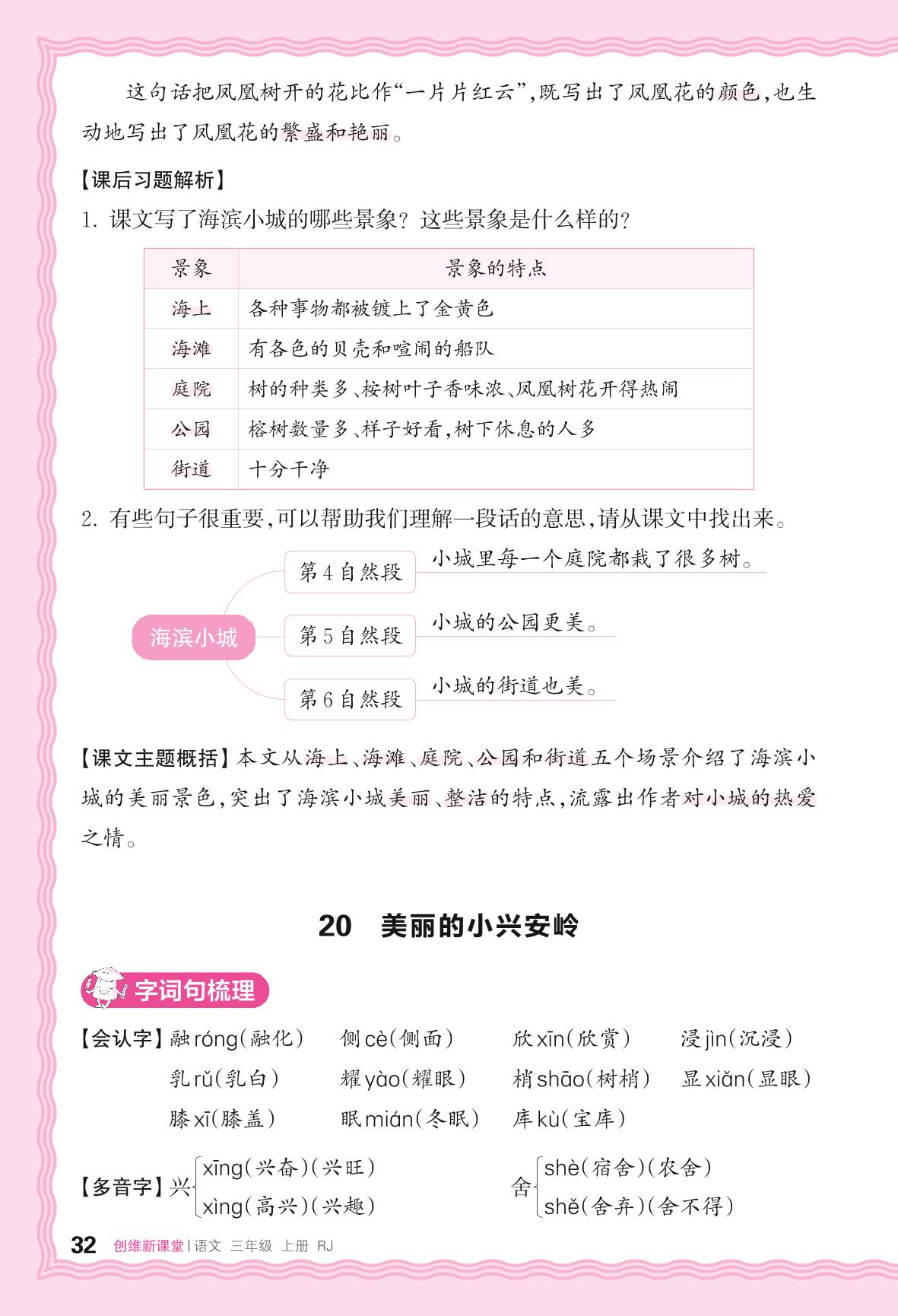 2024秋上册三年级语文人教版 助学手册 第六单元——20. 美丽的小兴安岭