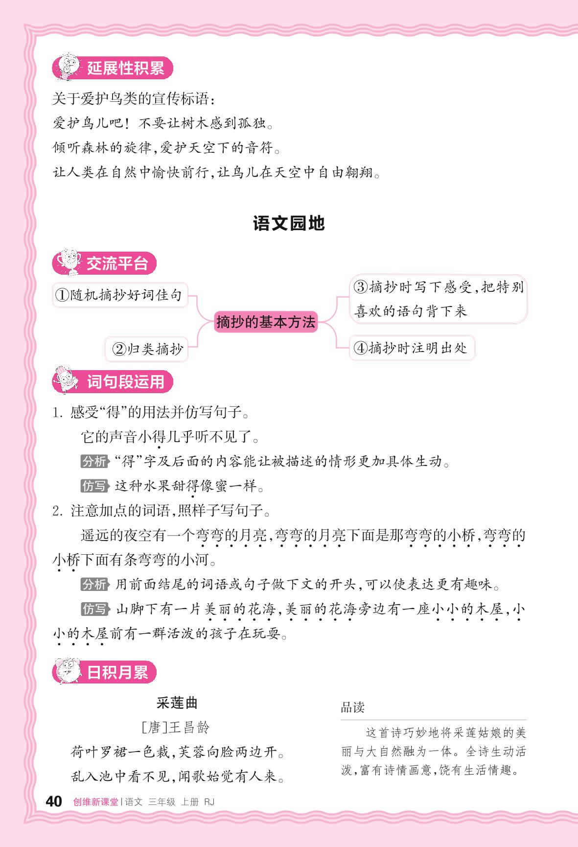 2024秋上册三年级语文人教版 助学手册 第七单元——语文园地