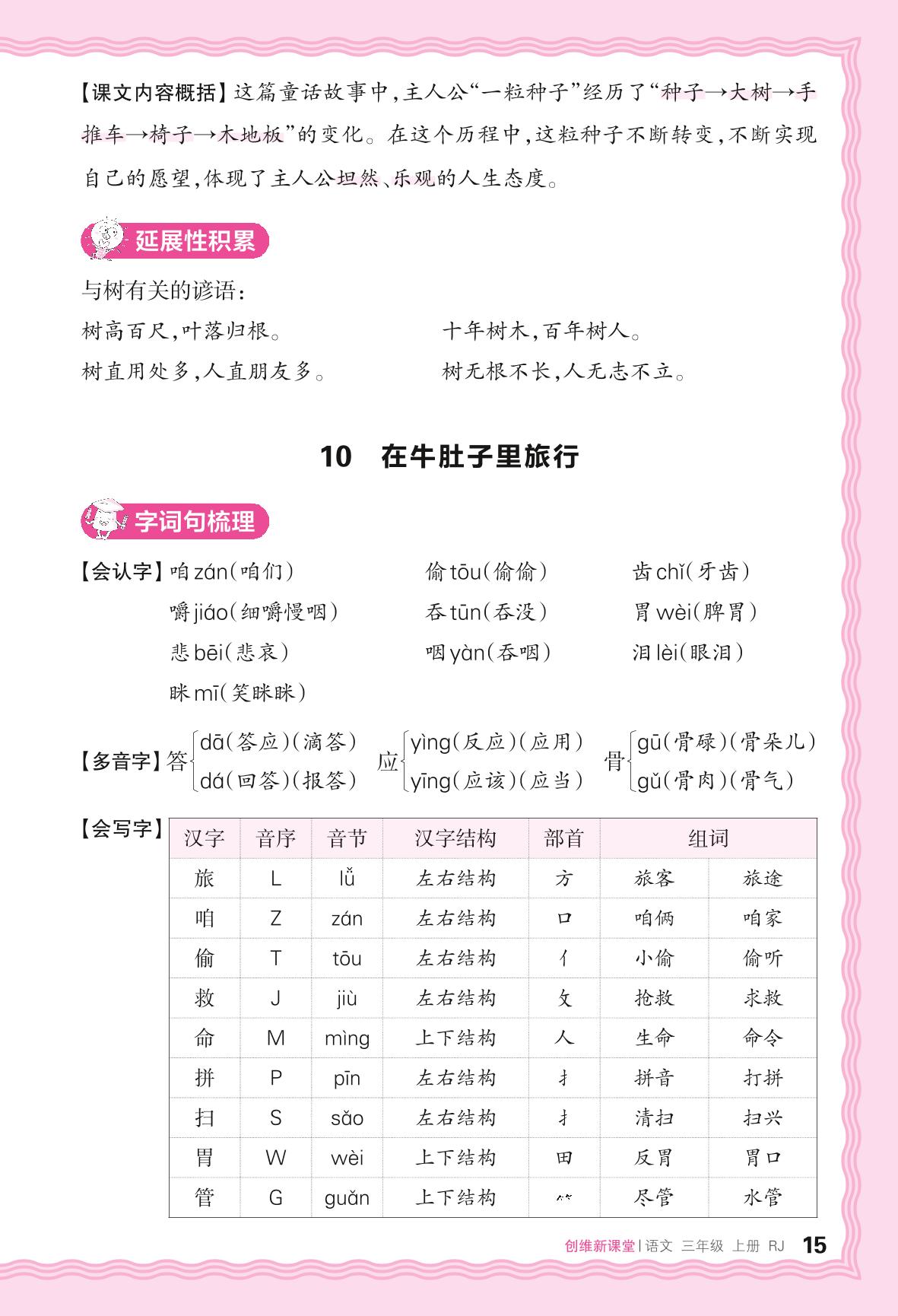 2024秋上册三年级语文人教版 助学手册 第三单元——10. 在牛肚子里旅行