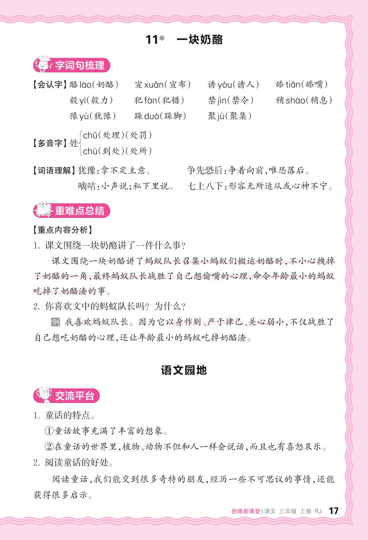 2024秋上册三年级语文人教版 助学手册 第三单元——语文园地