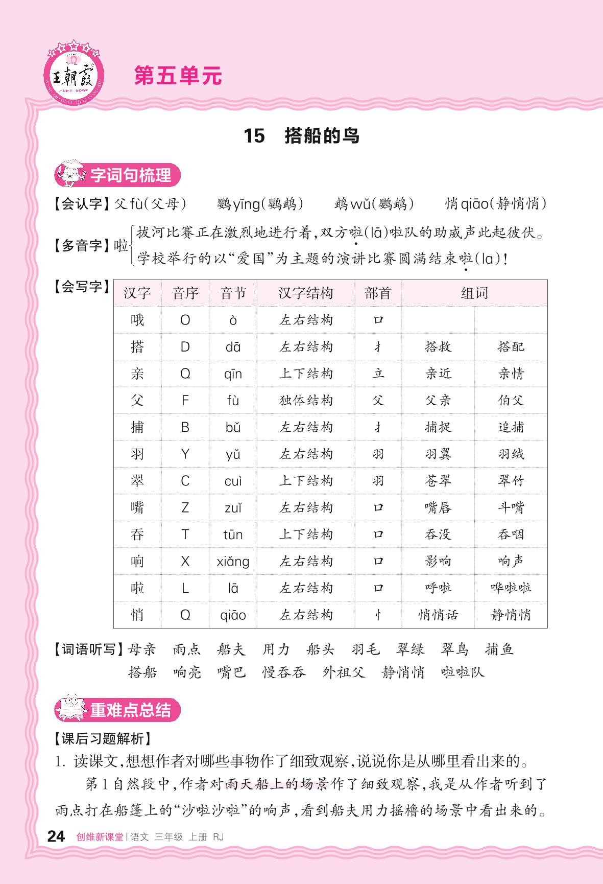 2024秋上册三年级语文人教版 助学手册 第五单元——15. 搭船的鸟