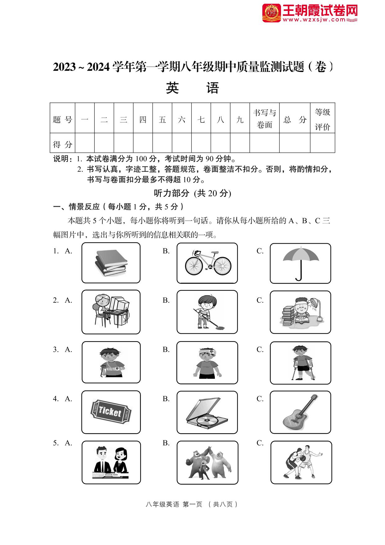 山西省孝义市2023-2024学年第一学期期中质量监测八年级英语(人教版)【无听力音频】