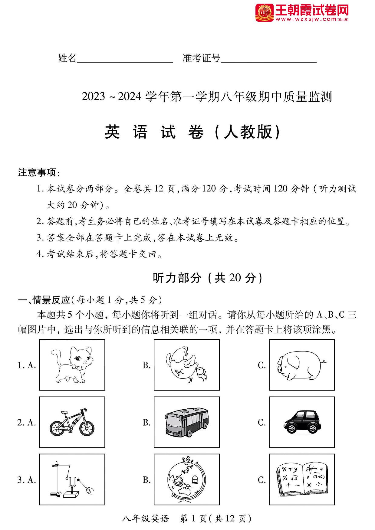 山西省太原市2023-2024学年第一学期期中质量监测八年级英语(人教版)【无听力音频】