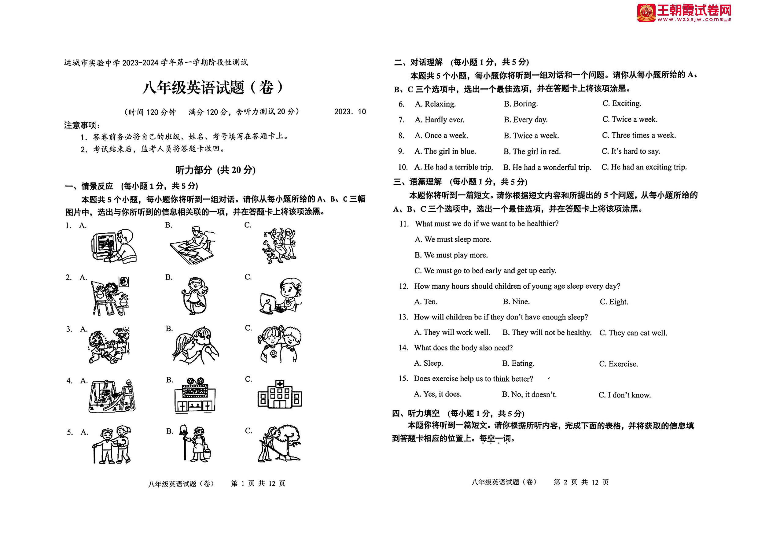 山西省运城市实验中学2023-2024学年第一学期阶段性测试(月考)八年级英语(人教版)