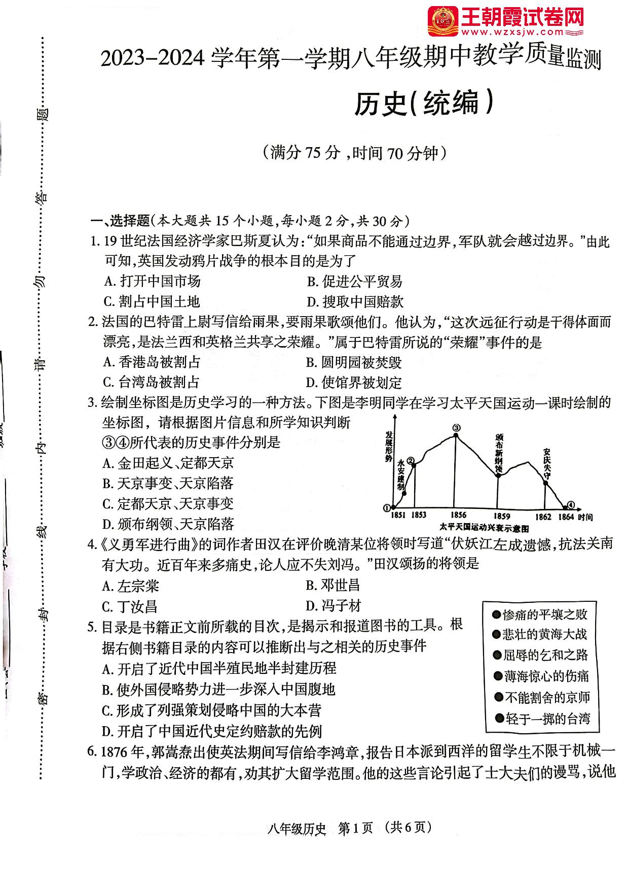 山西省临汾市兴国实验学校2023-2024学年第一学期期中教学质量监测八年级历史(人教版)
