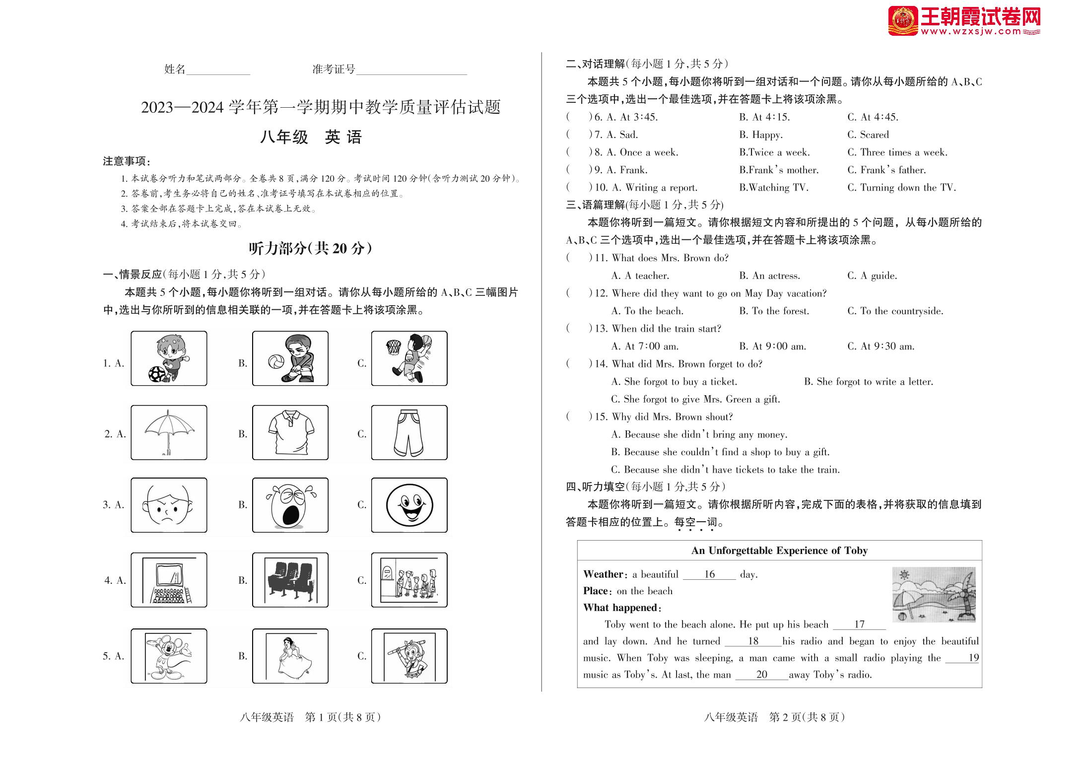 山西省长治市长子县2023-2024学年第一学期期中教学质量评估试题八年级英语(沪教版)【无听力音频】