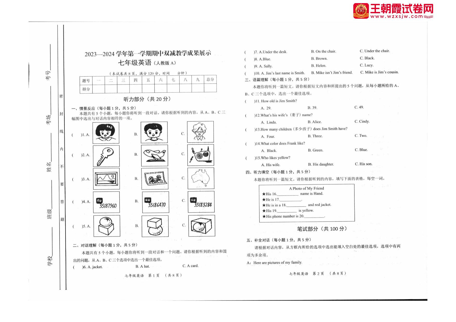 山西省忻州市2023-2024学年第一学期期中双减教学成果展示七年级英语(人教版)【无听力音频】