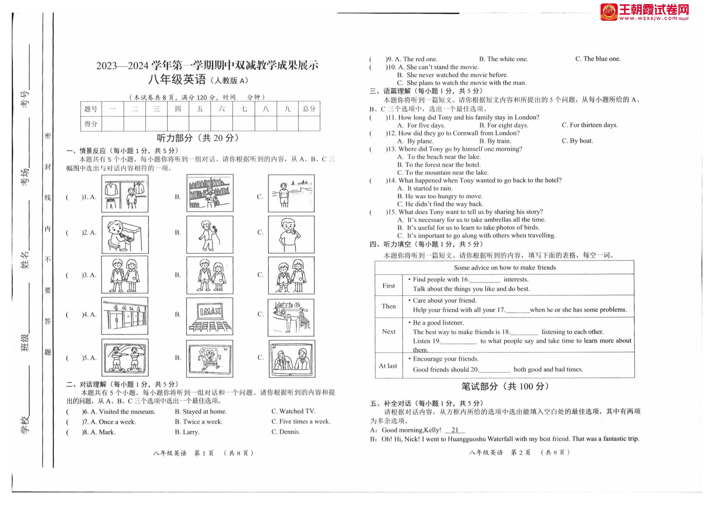 山西省忻州市2023-2024学年第一学期期中双减教学成果展示八年级英语(人教版)【无听力音频】