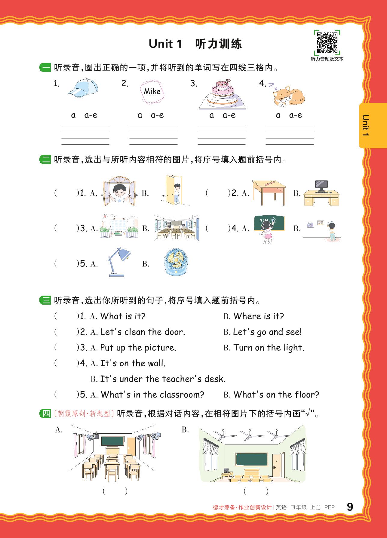2024秋上册四年级英语人教PEP版(三起始) Unit 1 听力训练