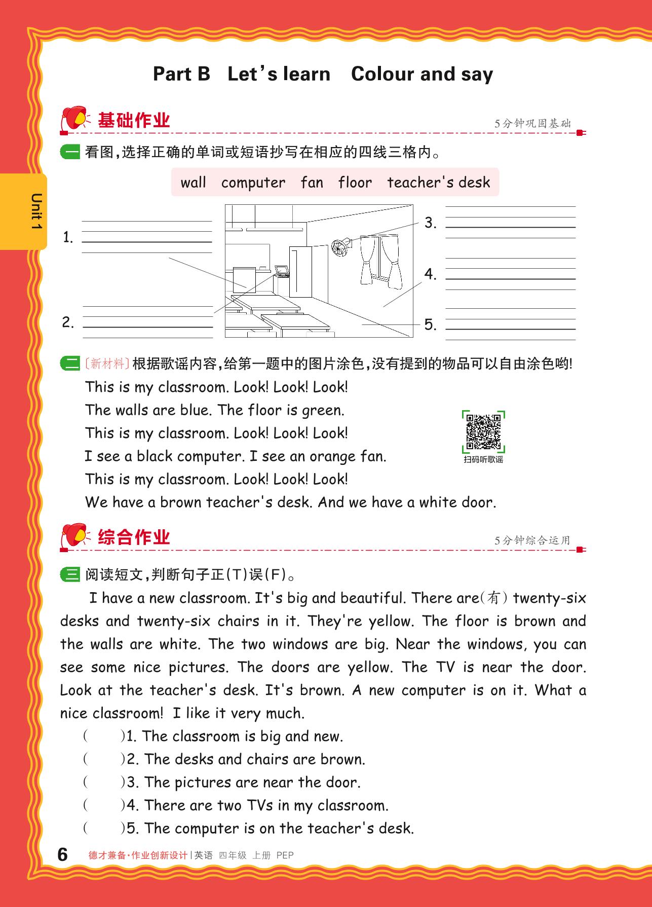 2024秋上册四年级英语人教PEP版(三起始) Unit 1—Part B Let’s learn Colour and say