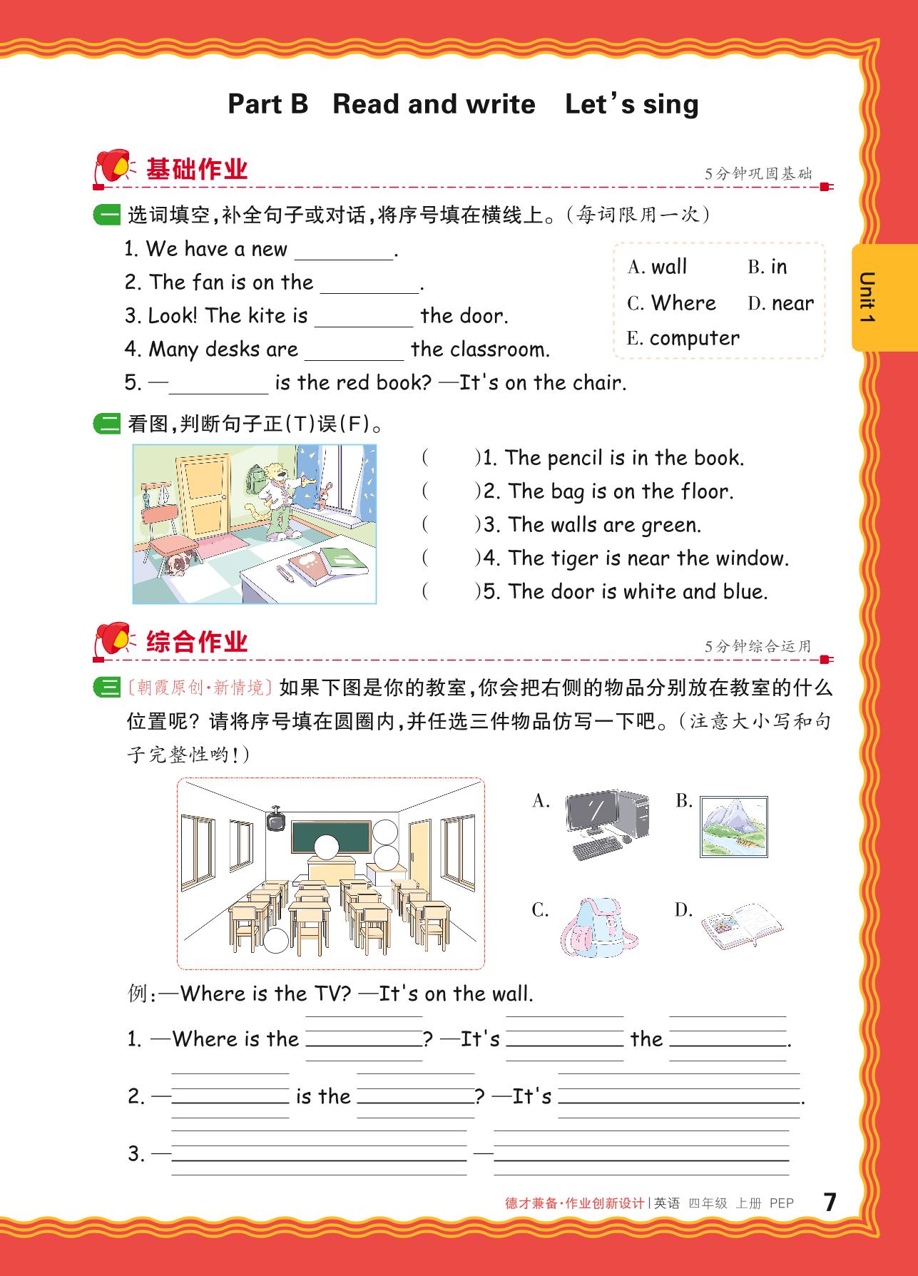 2024秋上册四年级英语人教PEP版(三起始) Unit 1—Part B Read and write Let’s sing
