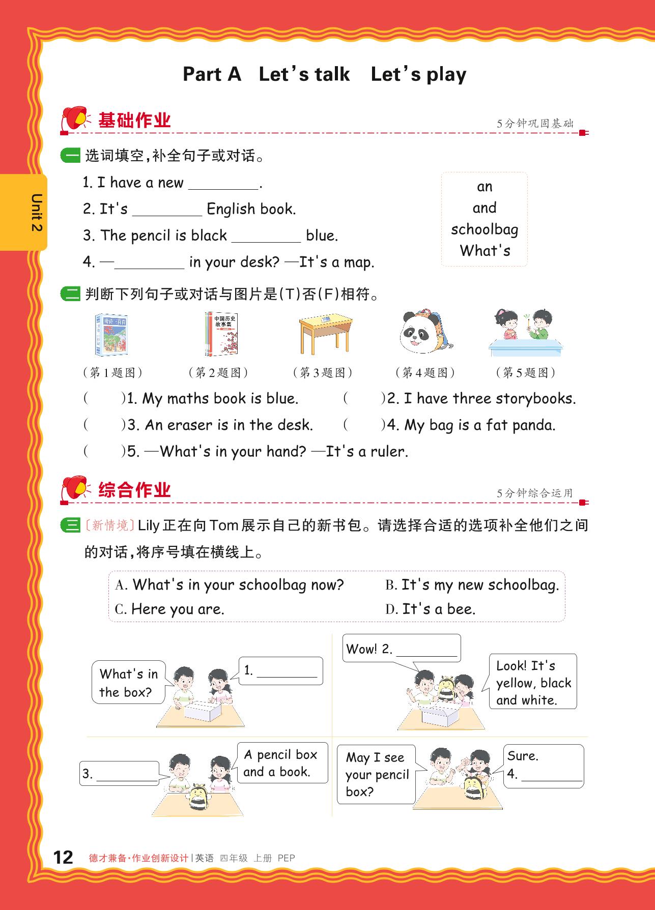 2024秋上册四年级英语人教PEP版(三起始) Unit 2—Part A Let’s talk Let’s play