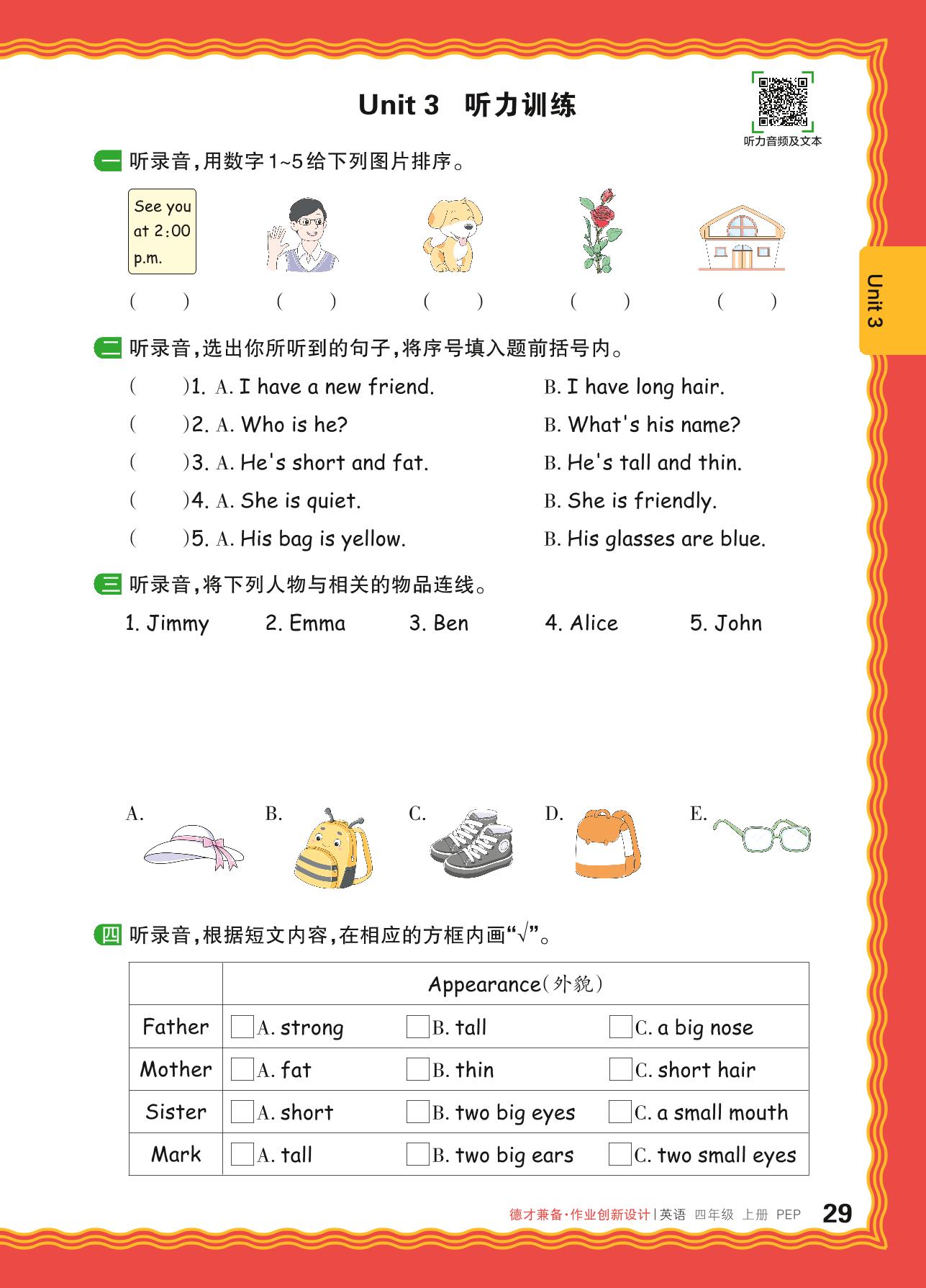 2024秋上册四年级英语人教PEP版(三起始) Unit 3 听力训练
