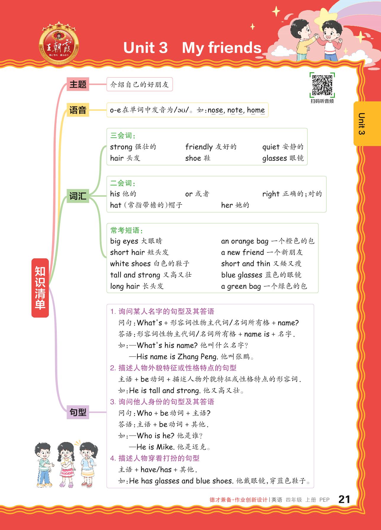 2024秋上册四年级英语人教PEP版(三起始) Unit 3 知识清单