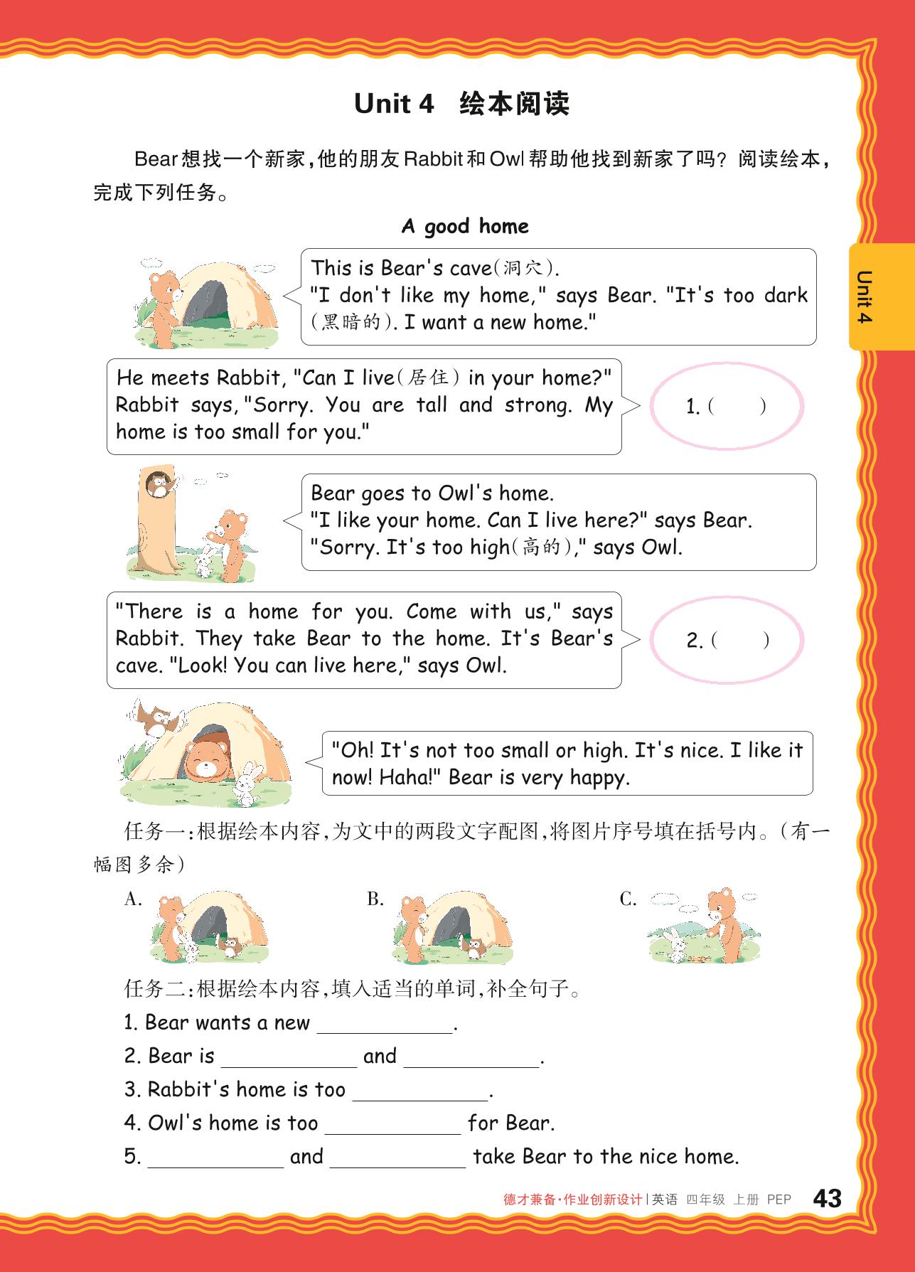 2024秋上册四年级英语人教PEP版(三起始) Unit 4 绘本阅读