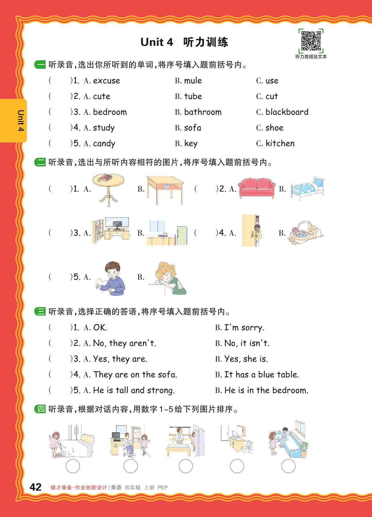 2024秋上册四年级英语人教PEP版(三起始) Unit 4 听力训练