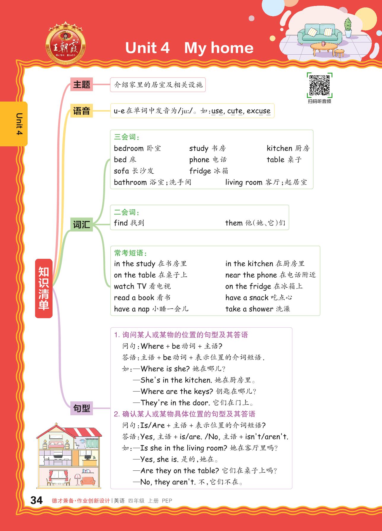 2024秋上册四年级英语人教PEP版(三起始) Unit 4 知识清单