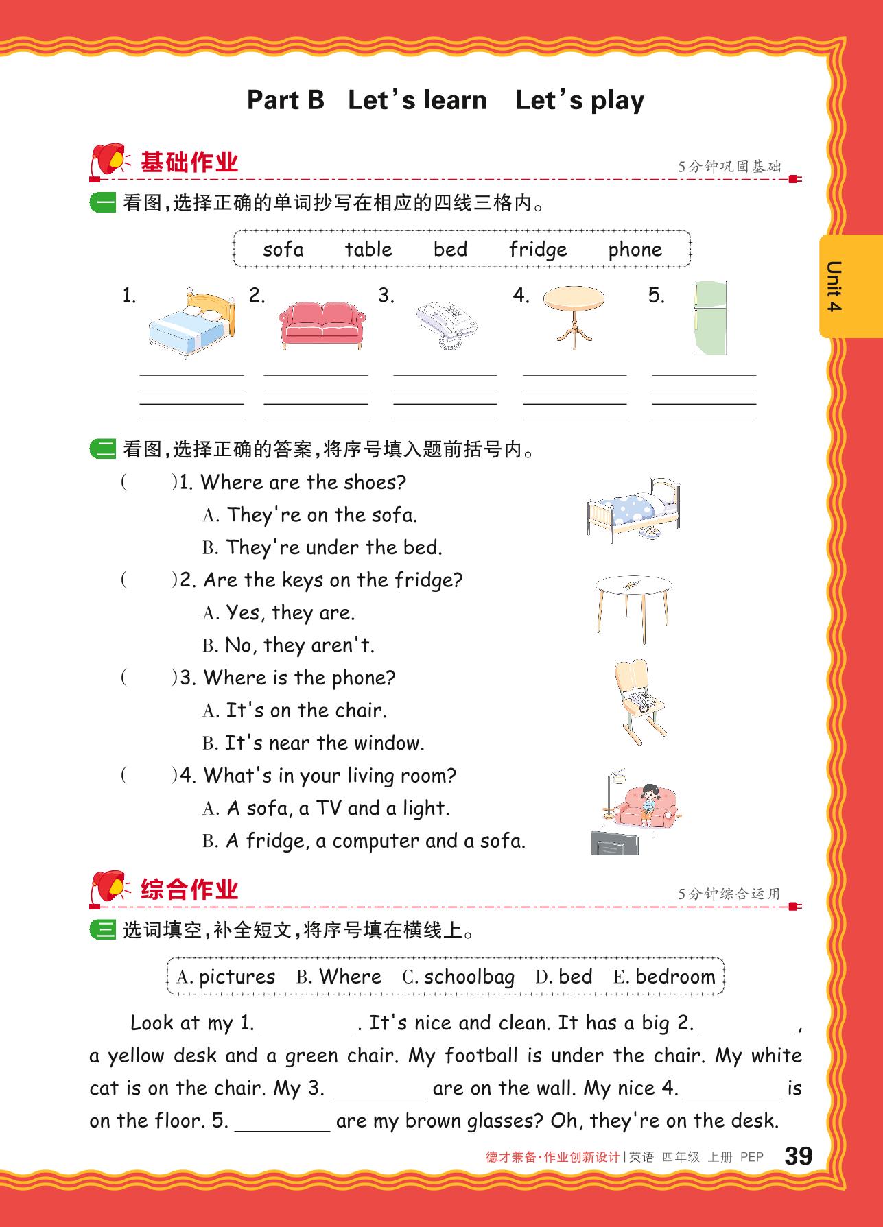 2024秋上册四年级英语人教PEP版(三起始) Unit 4—Part B Let’s learn Let’s play