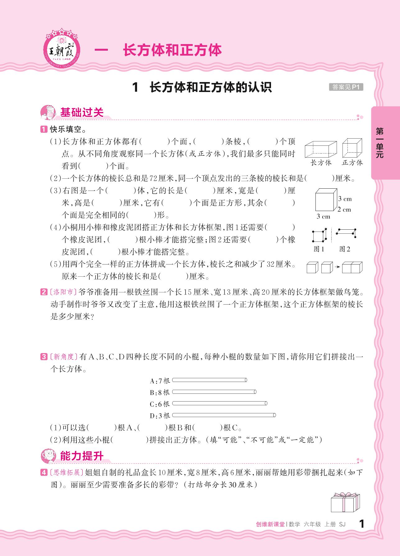 2024秋上册六年级数学苏教版 第一单元 长方体和正方体——1. 长方体和正方体的认识_R240820084740933