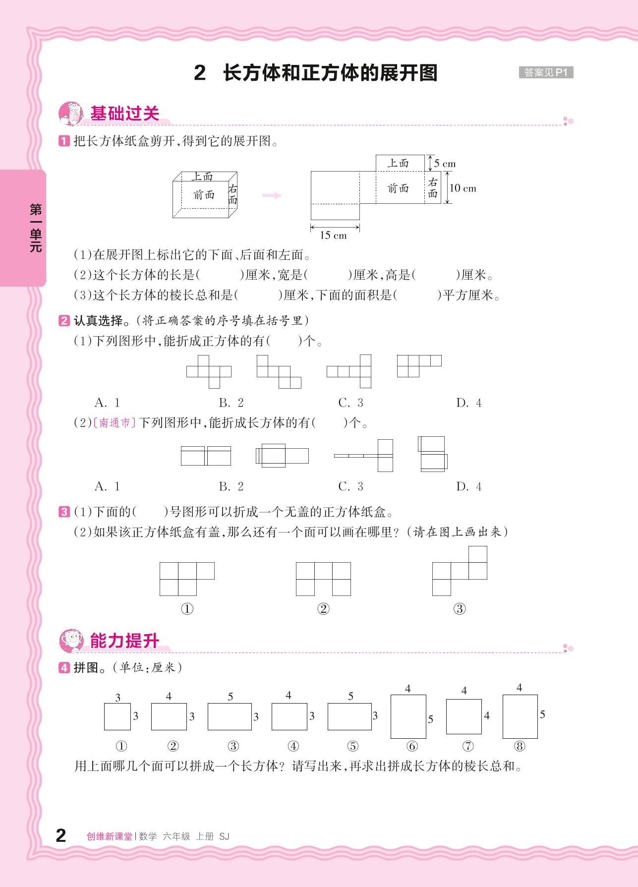 2024秋上册六年级数学苏教版 第一单元 长方体和正方体——2. 长方体和正方体的展开图_R240820084740214
