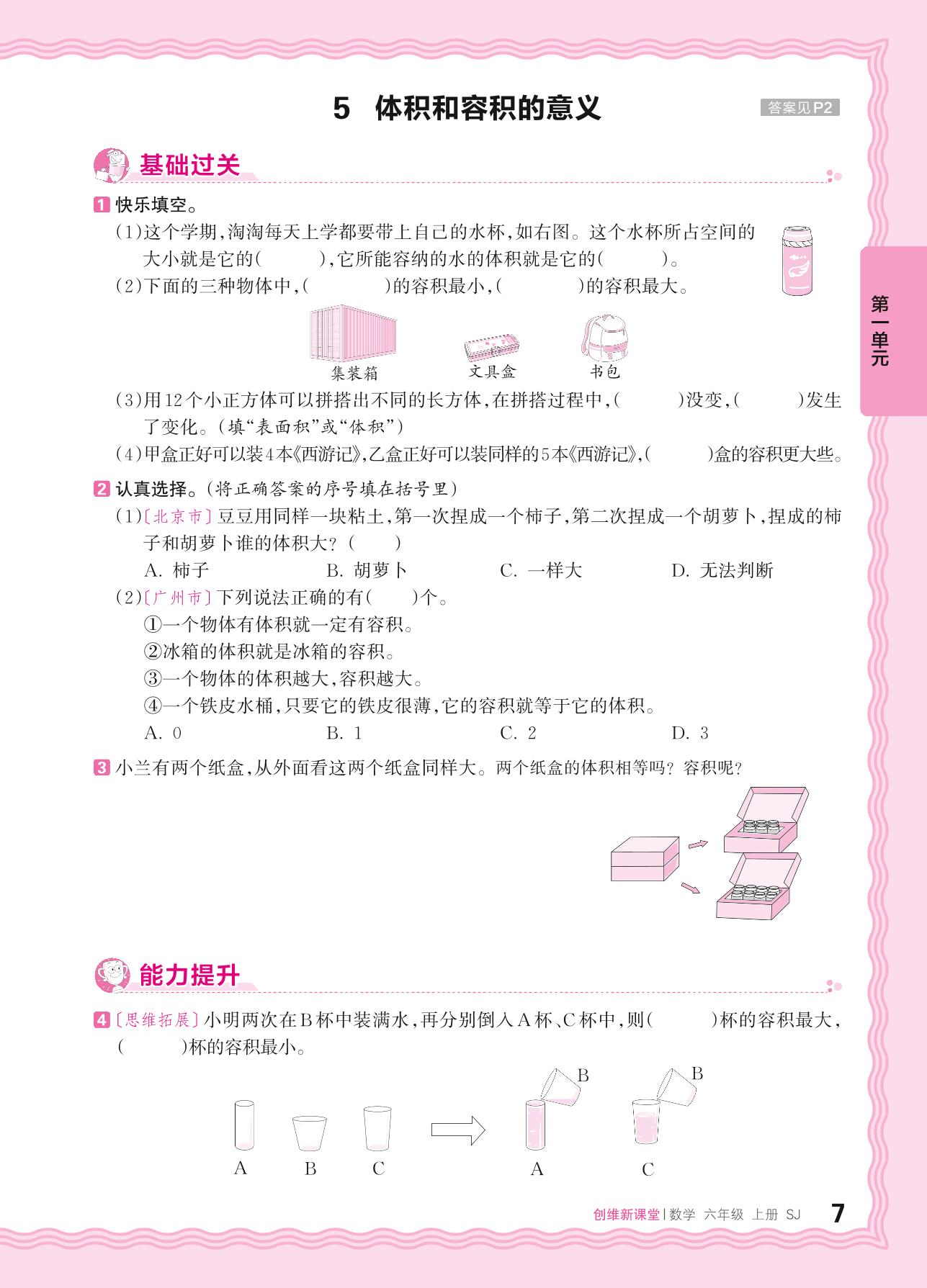 2024秋上册六年级数学苏教版 第一单元 长方体和正方体——5. 体积和容积的意义