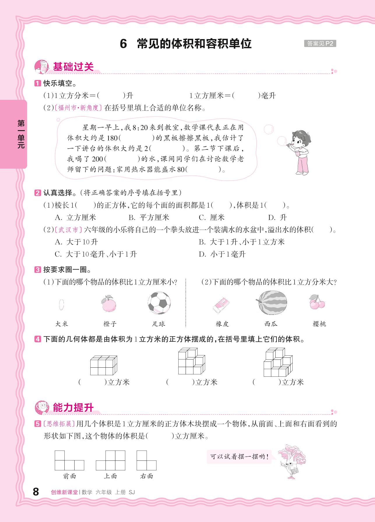 2024秋上册六年级数学苏教版 第一单元 长方体和正方体——6. 常见的体积和容积单位