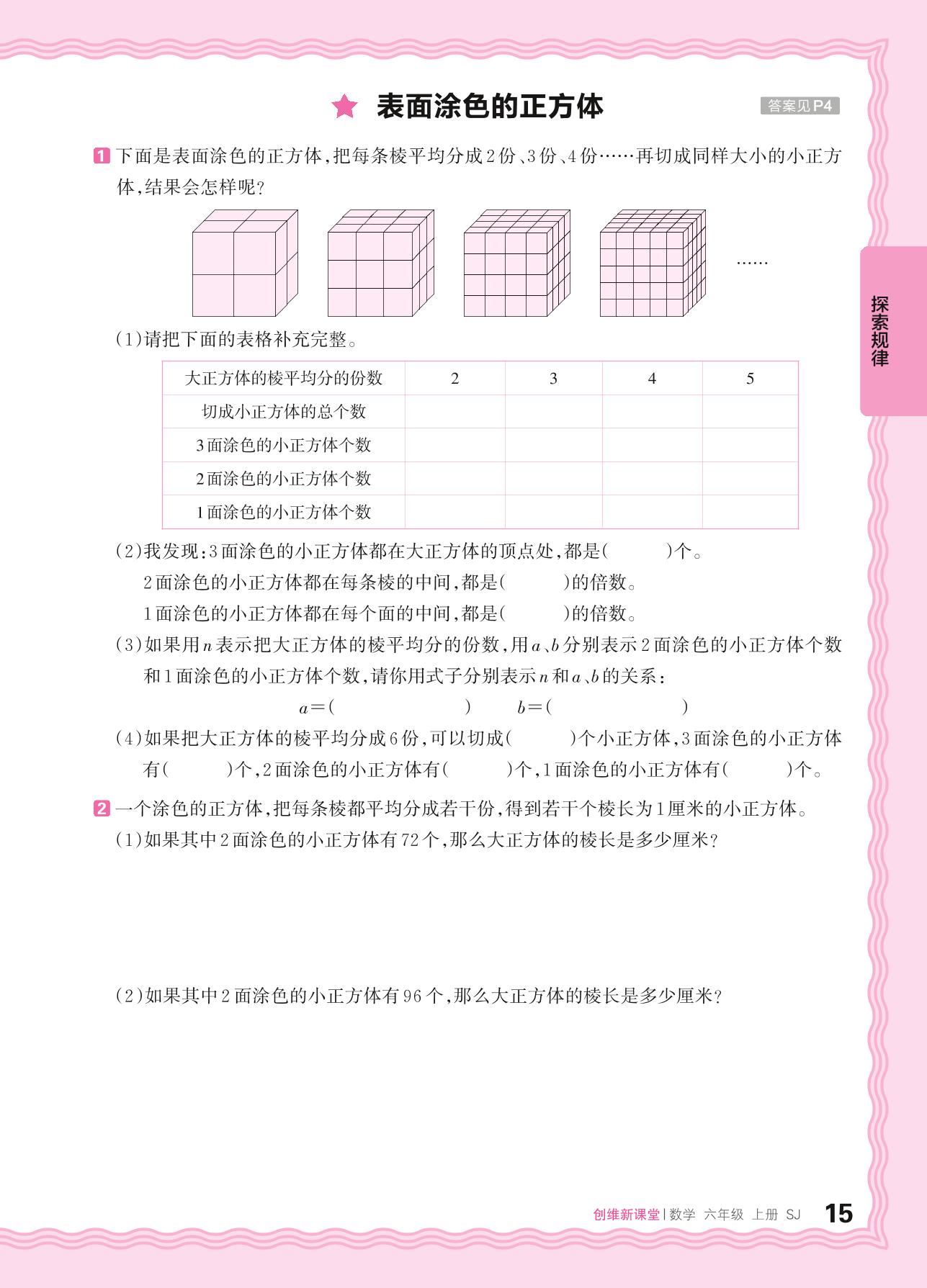 2024秋上册六年级数学苏教版 第一单元 长方体和正方体——表面涂色的正方体