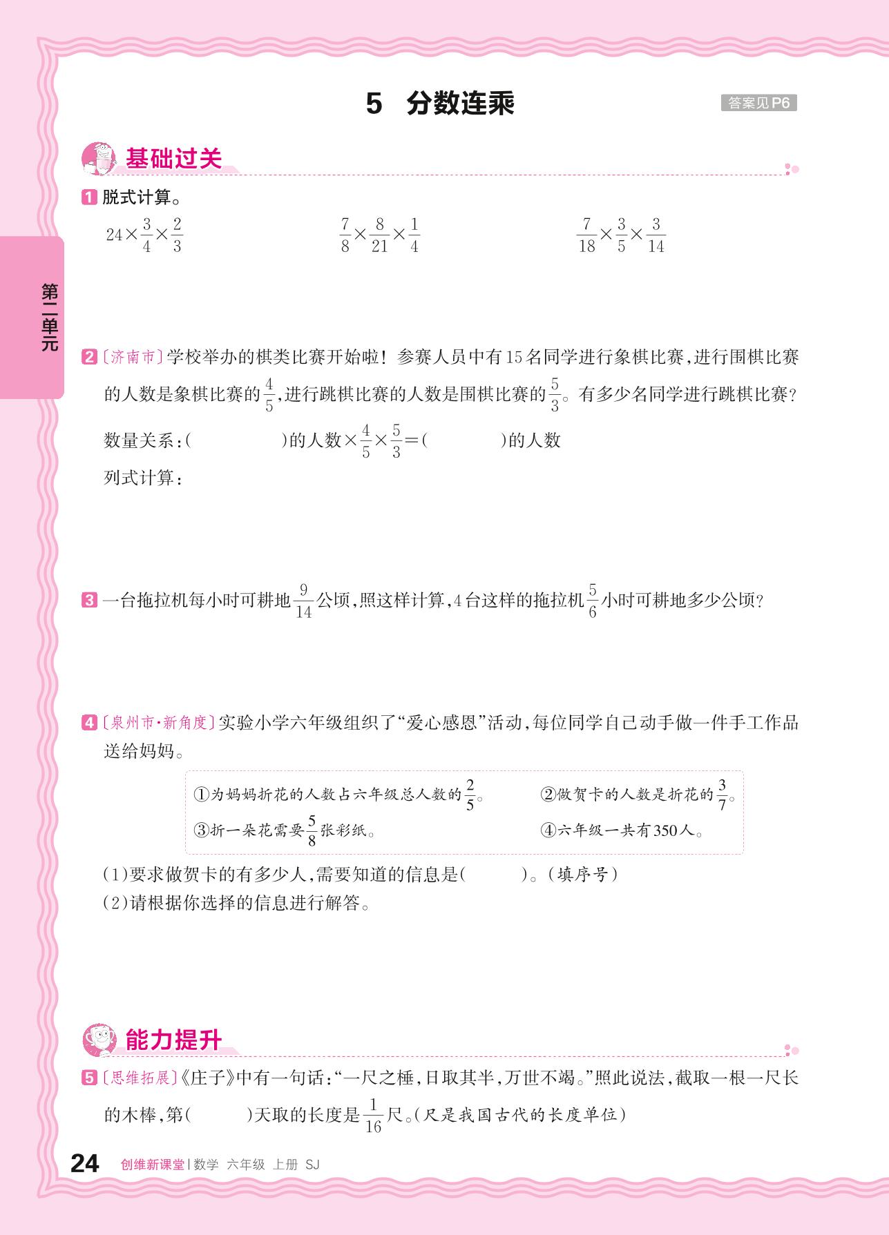 2024秋上册六年级数学苏教版 第二单元 分数乘法——5. 分数连乘