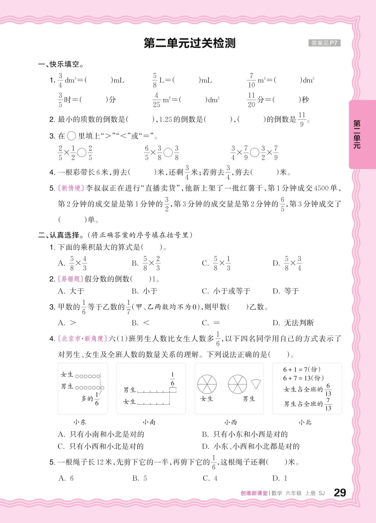 六年级数学苏教版上册单元卷