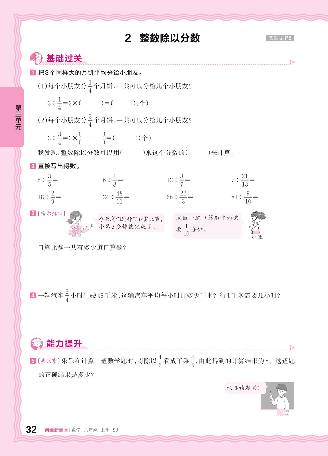 2024秋上册六年级数学苏教版 第三单元 分数除法——2. 整数除以分数_R240820084750181