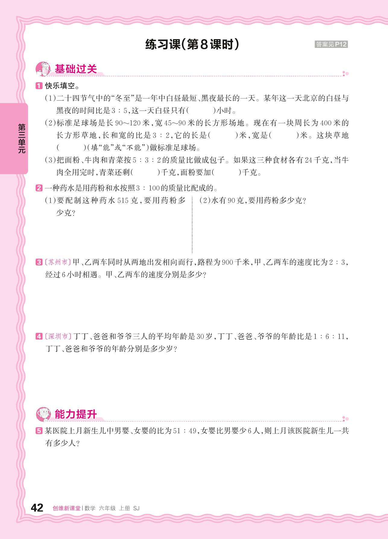 2024秋上册六年级数学苏教版 第三单元 分数除法——按比分配的实际问题练习课