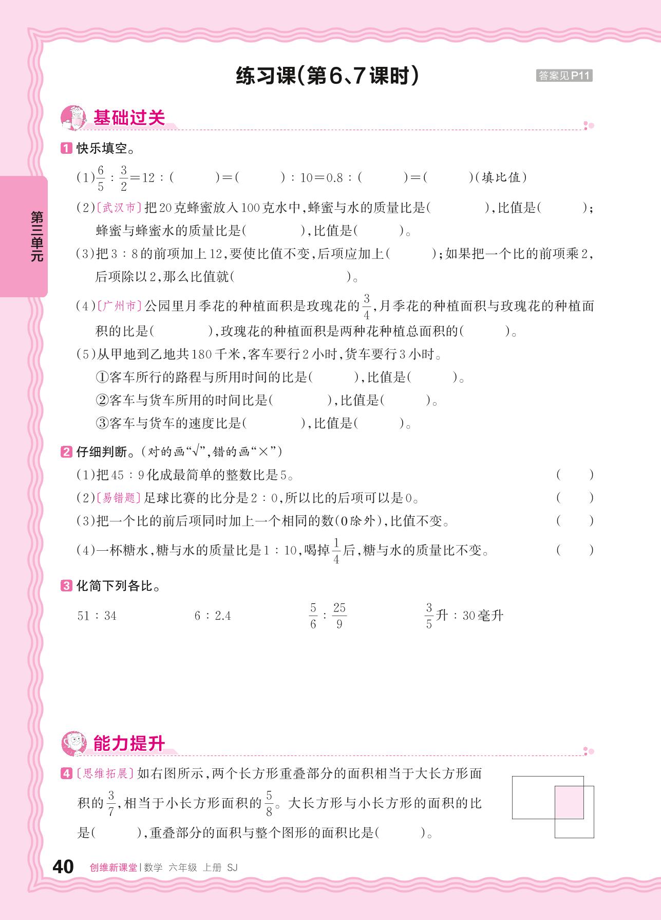 2024秋上册六年级数学苏教版 第三单元 分数除法——比的意义、比的基本性质及化简比练习课