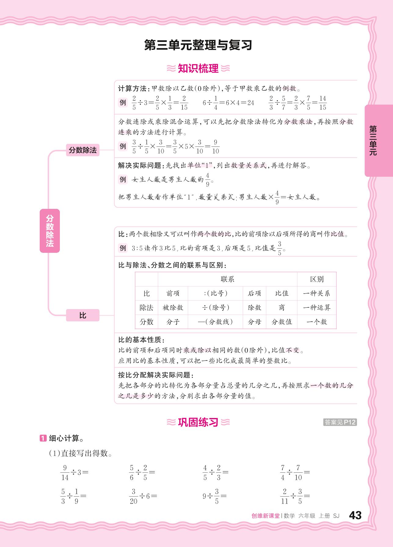 2024秋上册六年级数学苏教版 第三单元整理与复习
